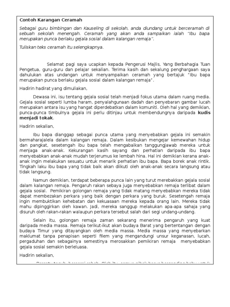 Antaranya ialah akibat hujan yang berterusan. CONTOH KARANGAN CERAMAH. Cara Membuat Teks Ceramah.